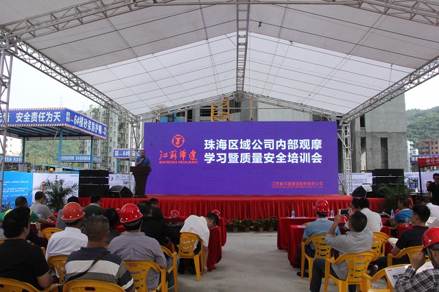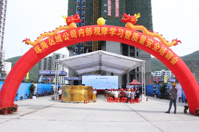 10月16日下午,珠海公司在晋和天庆花园二期项目部举行内部观摩学习暨质量安全培训会。珠海区域公司、重庆分公司各工程处、直管项目部项目经理、技术、安全负责人80余人参加了培训会。