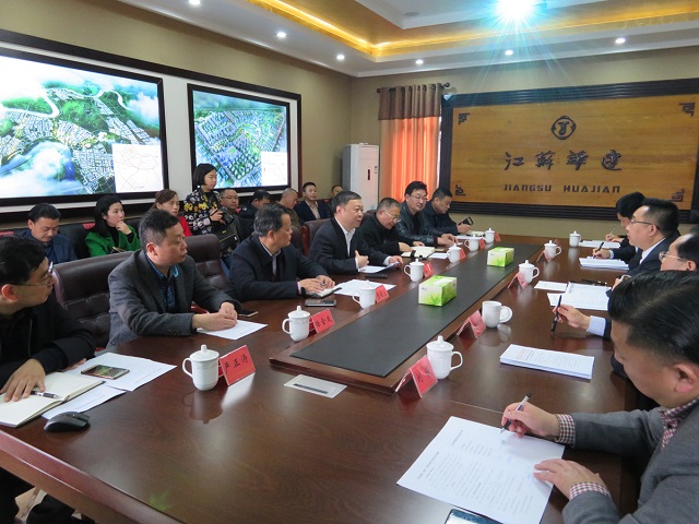 封顶仪式结束后,王董事长一行与岳池县委书记郑鹏程为首的县四套班子领导在公司会议室举行了座谈会。郑书记对华建管理层高度重视岳池项目建设表示感谢,并提出三点意见:一是岳池城东新区建设具有先导性,希望双方在现有基础上进一步深化互利合作;二是项目建设要把握好节奏,要更加注重标志性和引领性;三是双方要切实规范项目运行,及时完善施工手续,确保项目顺利推进。王宏董事长对岳池县政府对岳池项目给予的关心支持表示感谢,他同时表示,此次来岳一是旨在加强和保持与岳池县委县政府的交流沟通,增进往来,深化双方感情;二是实地了解项目建设情况,落实二期项目实施相关工作,协调各方工作对接,强化资金保障支持,以顺利推进项目建设。双方还就马家村对口扶贫工作进行了沟通交流,王董事长强调江苏华建将按照岳池县政府的统筹安排,积极履行社会责任,认真研究如何实现精准扶贫并开辟生财之道,持续帮扶马家村脱贫致富。