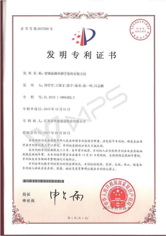 公司首获一项国家发明专利授权 时间:2017-10-23 2525 近日,半岛官网入口网页版珠海区域公司《型钢悬挑外脚手架的安装方法》获得国家发明专利授权,这是珠海区域公司获得的第一个国家发明专利授权。 该发明提供一种型钢悬挑外脚手架的安装方法,包括提供可拆卸的压环、吊环;将压环预埋后,将型钢悬挑梁安装并定位,并使用压环紧固其固定端,将钢丝绳穿过吊环后紧固型钢悬挑梁的悬挑端。本发明安装方法简单,拆卸后的压环和吊环可重复利用,有利于环保。