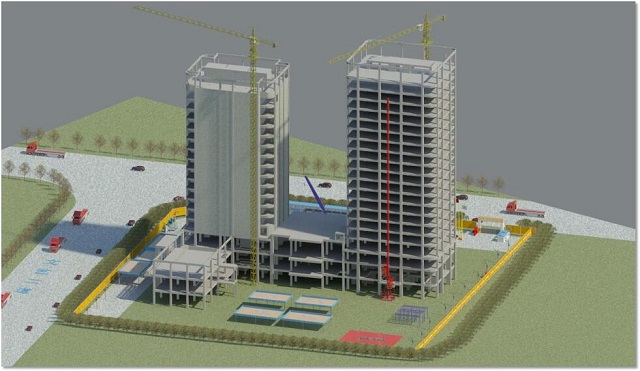横琴隆义广场项目位于珠海横琴自贸区,工程造价为16000万元,建筑面积约60000平方米,由1栋17层和1栋20层的塔楼组成,最大高度为85.8米,合同工期730天。建成之后将成为横琴岛上的高档酒店和写字楼。该工程运用BIM技术,珠海公司联合华建设计院建立项目BIM设计模型,完成了多专业碰撞检查、模型二次深化设计、净高分析等工作。此外,公司在项目施工中还基于高精度BIM施工模型做到了施工临时场地布置、BIM样板引路、机电管线综合优化、铝合金模板预拼装、脚手架系统深化设计、动态可视化交底、施工进度计划及造价控制等工作的优化管理,项目结合二维码的协同管理云平台,实现了“工厂预制加工”“扫码组装”“二维码安全技术交底”“设备信息录入”等智能化操作,在保证施工质量的同时也极大地提高了协同工作的效率,使项目在施工成本、进度、安全、质量等方面的管理效率得到了巨大提升。