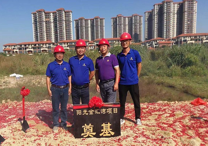 同日,阳江阳光金汇湾花园项目成功举行了奠基仪式,项目投资方代表和阳江分公司副总经理、第一项目部负责人余新江、金汇湾花园项目部管理人员等出席仪式。