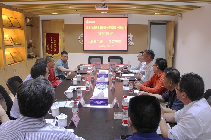 4月14日,公司举行深联电路PCB工业园项目签约仪式。公司总经理吕方达、副总经理、总会计师窦宝东和深联电路行政总裁文成林、董事主席徐俊松、总裁助理郭鑫君、营运总经理安国义等参加签约仪式。