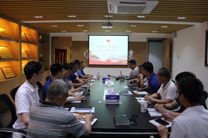 公司办公室樊晨亮作了一堂题为《不忘初心 坚定自信——昂首迈步新时代》的党课,通过理论知识和视频学习相结合的方式,对习近平总书记提出的“四个自信”重要论述作了解读。
