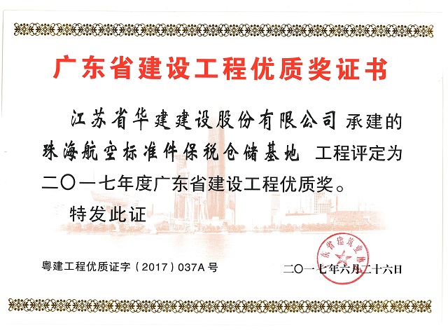 珠海航空标准件保税仓储基地 2017年度广东省建设工程优质奖