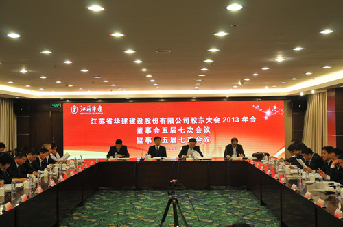 4月27日下午,江苏省华建建设股份有限公司股东大会2013年会暨董事会、监事会五届七次会议...