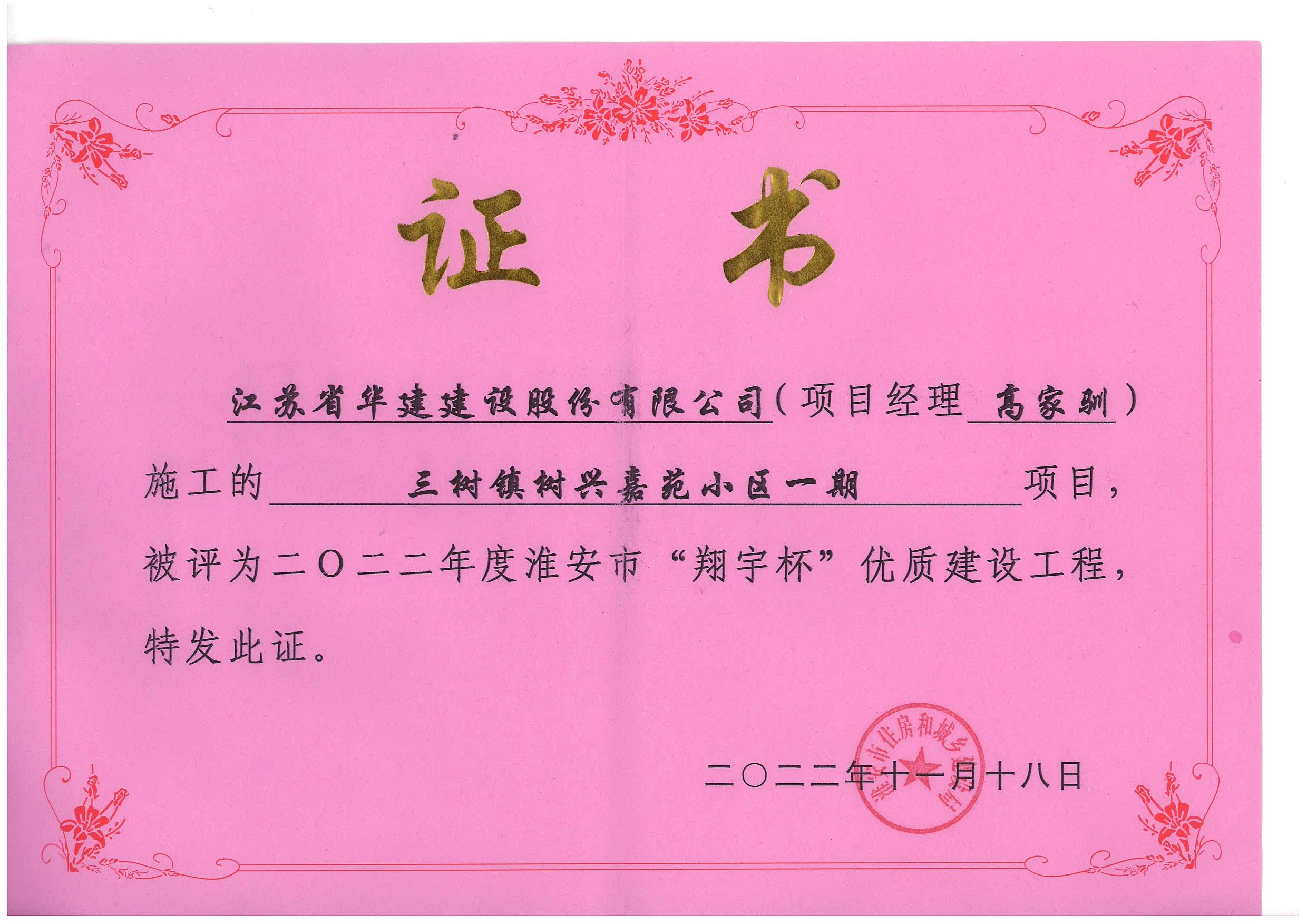近日,淮安市住房和城乡建设局下发了《关于公布2022年淮安市“翔宇杯”优质建设工程名单的通...