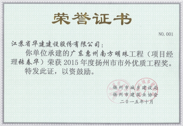2015年扬州市市外优质工程奖2014年度市外琼花杯-广东惠州万麓湖一期2013年度市外琼...