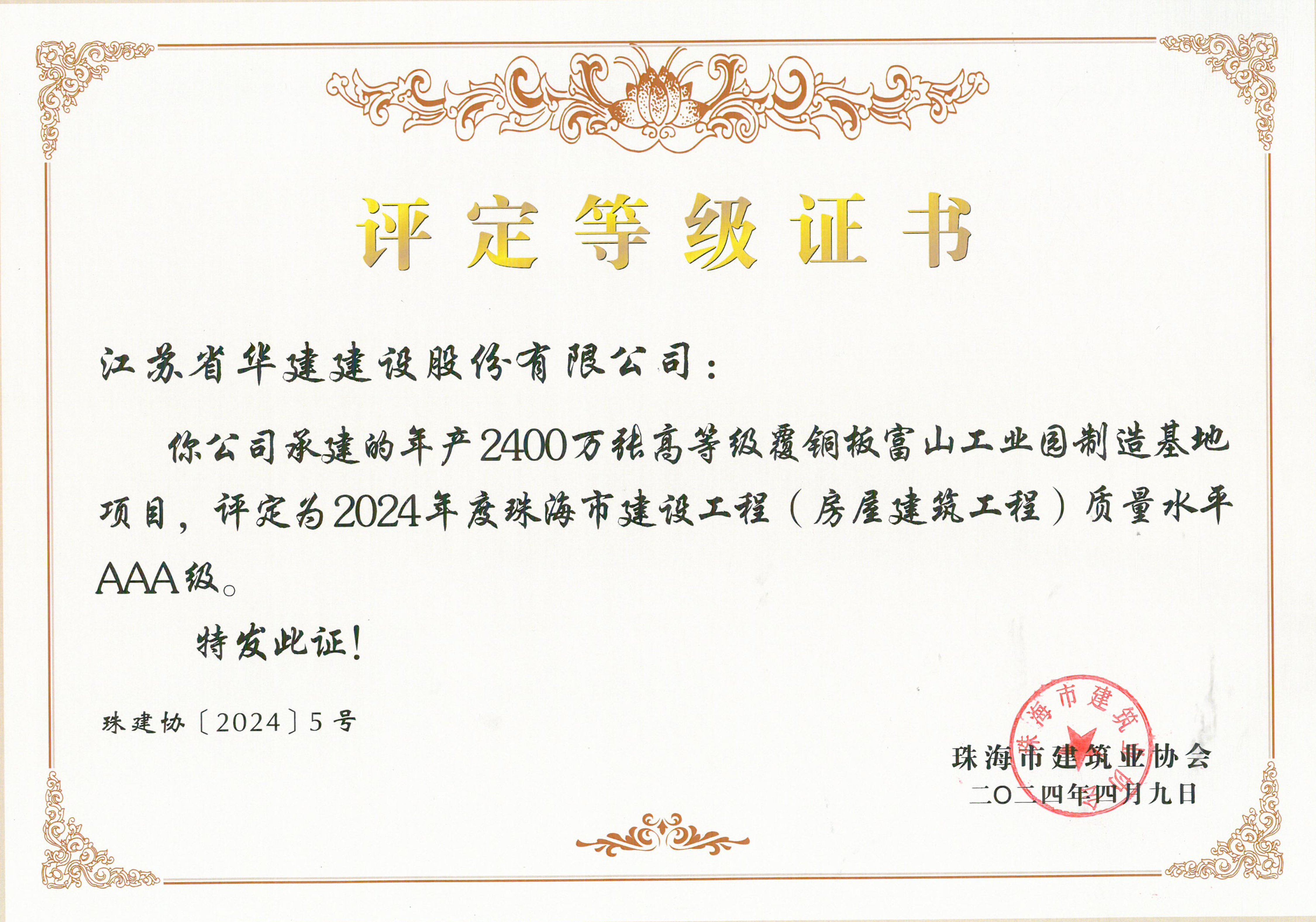 近日,珠海市建筑业协会公布2024年度珠海市建设工程(房屋建筑工程)质量水平评定结果,由珠...