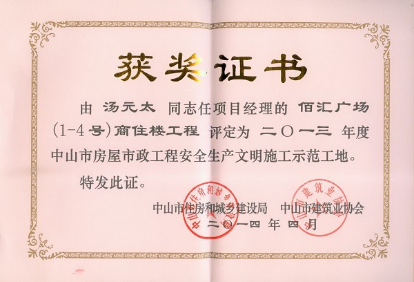 2013年度佰汇广场商住楼工程中山市房屋市政工程安全生产文明...
