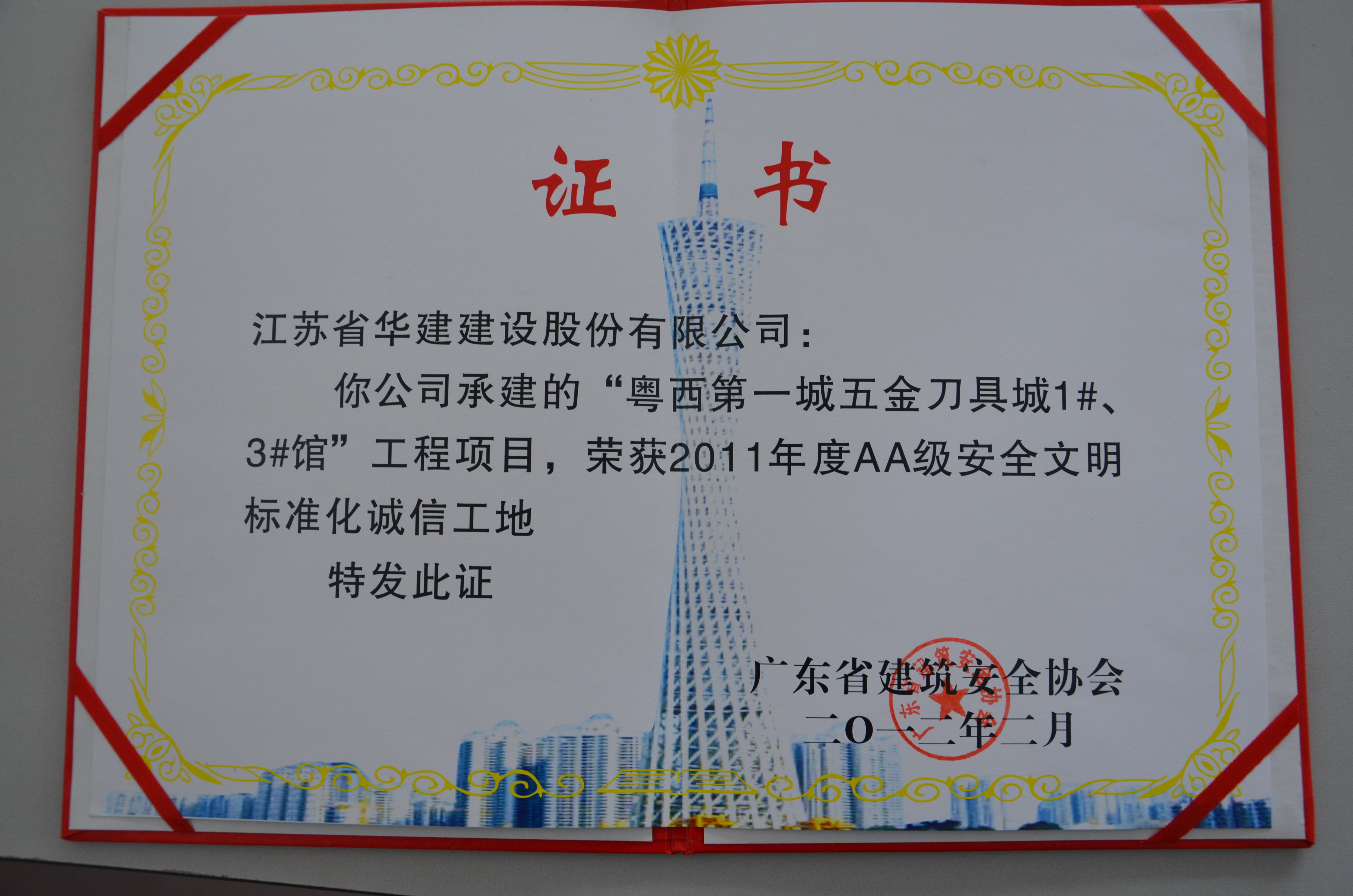2012阳江五金刀剪城广东省AA级安全文明标准化诚信工地