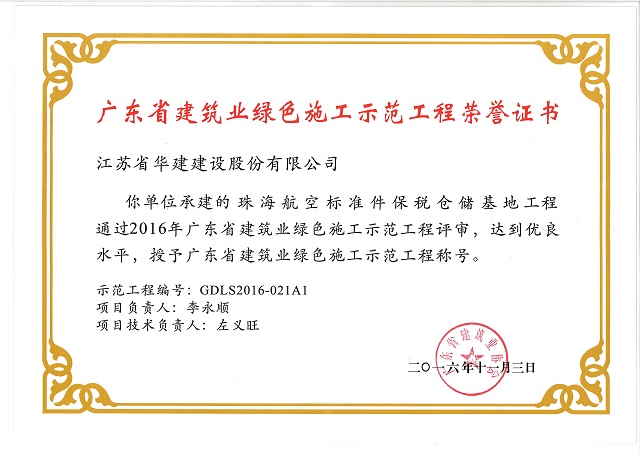 珠海航空标准件保税仓储基地工程广东省建筑业绿色施工示范工程