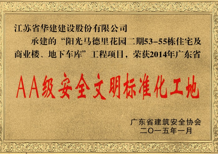 阳光马德里二期工程荣获2014年广东省AA级安全文明标准化工...
