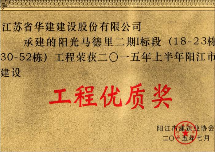 阳光马德里二期I标段(18-23栋、30-52栋)工程获20...