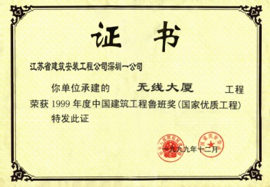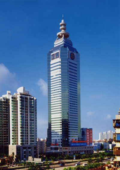 深圳无线大厦 时间:2008-12-29 11227 无线大厦(现名国通大厦)位于福田区新洲,建筑面积73069M2,高度201.5M,地下室2层,地上43层,是一座高智能化的电信写字楼,结构设计为钢筋砼框架一筒体结构,8-32层为无粘结预应力楼板砼,工程总造价6亿元。工程于1995年6月开工,1997年12月竣工,施工中主要应用了无粘结预应力砼、高强泵送砼、粗直径钢筋连接、外墙干挂花岗岩等新技术。荣获深圳市、广东省、江苏省的优质样板工程,“江苏省新技术应用示范工程”、江苏省“扬子杯”奖和99年度国家“鲁班奖”。