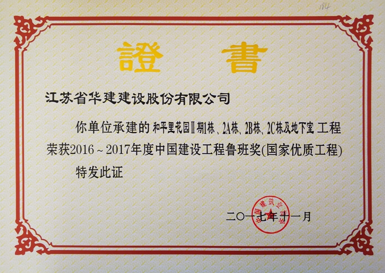 和平里花园Ⅱ期1栋、2A栋、2B栋、2C栋及地下室工程位于深圳市龙华新区,是群体住宅小区,是深圳市的旧城改造重点项目、民生工程。工程由4栋超高层建筑组成,地下2层、地上48层至49层,建筑面积144628.08平方米,建筑高度162.8米。工程先后获得广东省建设工程金匠奖、广东省建设工程优质奖、广东省建筑业新技术应用示范工程等奖项、第四批全国建筑业绿色施工示范工程 、广东省房屋市政工程安全生产文明施工示范工地、广东省双A级安全文明标准化工地。2017年被中建协评为2016—2017年度中国建设工程鲁班奖(国家优质工程)。