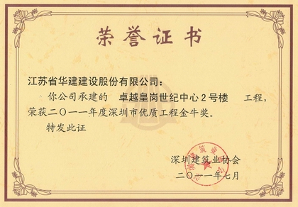 该工程先后被评为深圳市优质结构工程、深圳市优、“金牛奖”、 广东省建筑业新技术应用示范工程、全国AAA级安全文明标准化诚信工地、江苏省省优“扬子杯”和广东省优良样板工程。