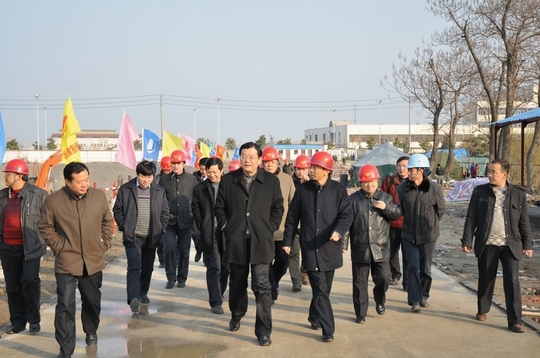31下午,扬州市政府副市长陈扬,市政府副秘书长、市城乡建设局局长王骏,以及市建设、规划、国土、人防等部门负责人前往半岛官网入口网页版代建的扬州建设大厦暨规划展览馆、市民中心项目工地现场视察调研,扬州建工控股公司、半岛官网入口网页版董事长陆金龙陪同视察,并向陈副市长一行简要汇报了工程施工进展情况。陈副市长对建设大厦总体施工进展表示满意,希望所有参建单位精心组织,科学管理,确保这一政府重点工程建设顺利推进。同时他希望市各相关部门创新思维,主动服务,为建设大厦项目的施工建设提供支持。公司领导吴士茂、程杰等也一起陪同视察。