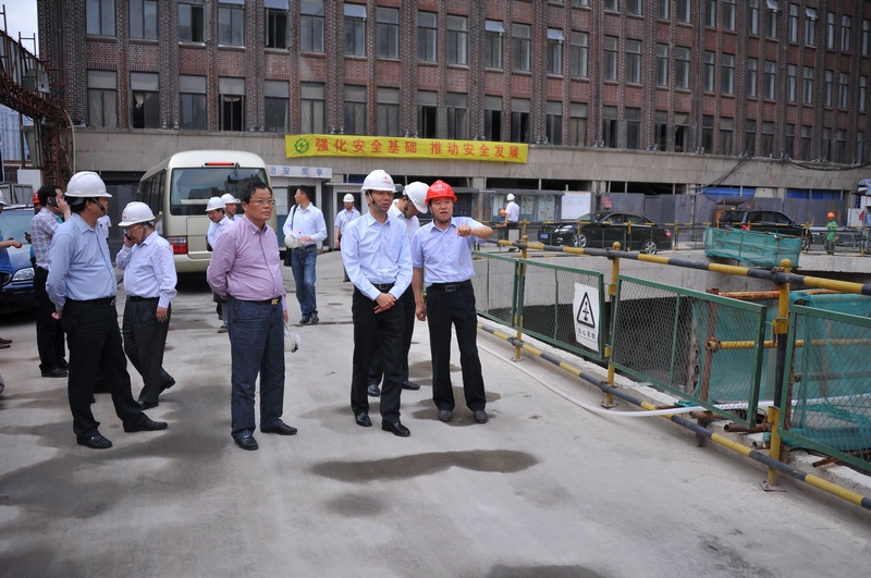 随后,陆董事长一行还到洛克外滩源项目进行了参观指导,对该项目在建和已完工部分进行了现场察看。洛克外滩源项目是江苏建筑企业在外滩承建的唯一世博项目,工艺要求高,施工难度大,考察团一行对该项目给予极高的评价。