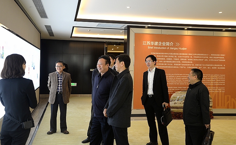 ,中国施工企业管理协会会长、原国家发改委副主任曹玉书一行来公司走访调研。在陆金龙董事长陪同下,曹会长一行参观了华建企业展示中心,详细了解了公司发展历程、市场分布、产业结构和企业文化,曹会长表示华建近年取得的成绩值得肯定,发展模式值得借鉴, 特别是创优成绩不俗。在会客厅陆董事长分享了企业发展理念并就宏观经济形势和大家进行了分析和讨论。曹会长最后表示中施企协作为施工企业的管理协会将一如既往地为企业提供帮助和支持,全力服务企业。华建作为行业的佼佼者要继续努力,再创佳绩,创优要越创越多,企业要做大做强,进一步放大品牌声誉和影响力。中施企协副会长、秘书长李鸿庆及相关部门负责人,公司领导程杰、陆俊、吴碧桥等参加活动。